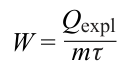 where W is the specific power of an explosive, kJ kg–1 μs–1; Qexpl is the heat of explosion,* kJ kg–1, m is the mass of the explosive, kg; τ is the time of energy release (lifetime of CRZ), μs.