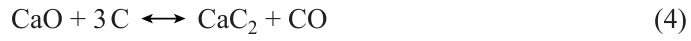 The traditional method for the production of calcium carbide is based on the reaction of calcium oxide, which is produced by decomposition of calcium carbonate (limestone), with a source of carbon, that is, metallurgical coke or anthracite (Equation (4)). This process is conducted in an electric furnace at a temperature of 2273 – 2573 K. The high temperature is a consequence of thermodynamic characteristics of the reaction, since the equilibrium constant of this reaction approaches unity at 1923 K. As the temperature is raised, the equilibrium shifts towards the carbide and carbon monoxide formation, whereas at reduced temperature, calcium oxide and carbon are thermodynamically preferred.[7]