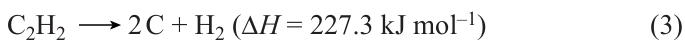 Due to the endothermic formation, the acetylene molecule is highly unstable and tends to undergo spontaneous deflagration and detonation to give soot and hydrogen (Equation (3)).