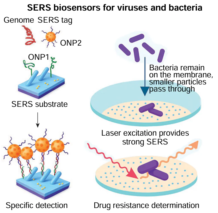 As a result, novel methods are required combining rapidness and accuracy of antibiotic resistance testing. This review describes current achievements in SERS-based biosensors for virus determination and drug-resistance testing.