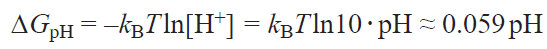 where n is the number of the transferred electrons, e is the electron charge, and U is the electrode potential; DGpH is the correction factor to the free energy of H+ ions, which takes into account the concentration dependence of the entropy and can be found from the equation