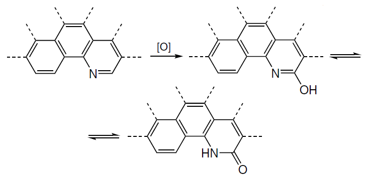 Later, theoretical notions about the influence of the pyridine nitrogen atom on the high catalytic activity in ORR for nitrogen-doped carbon materials were confirmed experimentally. For ORR catalyzed by nitrogen-doped graphite in an acidic medium (0.1 M H2SO4), Guo et al.[49] found, using HR-XPS, the formation of a stable 2-pyridone type intermediate (400.2 eV, see Fig. 8) upon the oxidation of the Ca carbon atom in the pyridine ring (Scheme 1). This confirms the hypothesis that the active sites for ORR are formed near the dopant pyridinic nitrogen atom located on the armchair edge. Experiments on CO2 adsorption demonstrated that the dopant also gives rise to active sites with the Lewis basicity at which the reaction takes place. The minimum experimental overpotential value hORR for the composition-optimized catalyst was 0.5 – 0.6 V, which is consistent with the theoretically predicted value.[162] Theoretical investigation of N-terminated N-doped carbon nanotubes with pyridinic nitrogen and a monovacancy indicates that the appearance of the 2-pyridone intermediate in experiments[49] may be attributable to the fact that 2-pyridone is more stable than tautomeric 2-hydroxypyridine in a wide range of electrode potentials U and corresponds to a local minimum on the potential energy surface (PES) of ORR, i.e., it is a reaction product (Fig. 12).[39]
