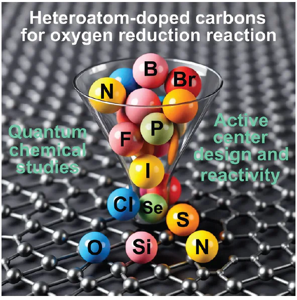 The introduction of a heteroatom into an unsaturated carbon matrix disrupts its π-electron structure due to differences in the atomic radius and electronegativity compared to those of substrate carbon atoms, thus leading to a change in the physical and chemical properties of the material.[24] The location and configuration of dopants play a key role in the formation of local sites with decreased (or increased) charge and/or spin density that are more effective for oxygen adsorption, decrease the activation barriers, and exhibit the catalytic activity in ORR.[24] [91][120][124-126] Heteroatom-doped carbon nanomaterials may demonstrate high efficiency and selectivity in the 4е pathway of ORR; they are considered to be most promising metal-free catalysts for fuel cells.[127]
