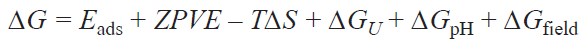 ZPVE and DS are the zero-point vibration energy of molecules and the entropy change in the system calculated in a similar way; T is absolute temperature (298 K); DGU is the Gibbs free energy of an electron calculated by equation (3):